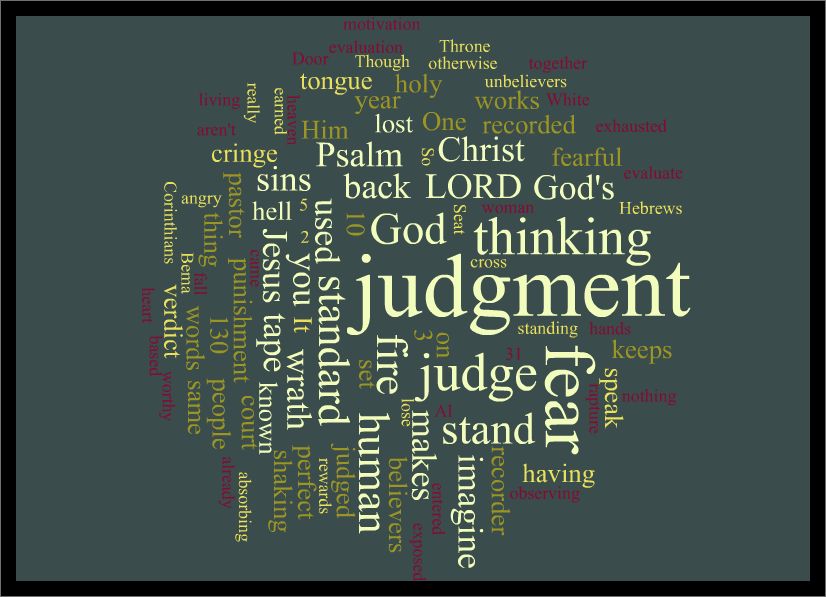 If in thinking of the tape recorded judgments you utter make you shrink back in fear of having those same levels of judgment thrown back at you... if thinking of that human standard makes you fear of their exposure before Jesus' much higher Godly standard, that is the fear of the Lord. It is a good fear. It is a Godly fear. It is the kind of fear that keeps our behavior and our sins in perspective. God's holy standard of judgment are perfect and unimaginable, and thinking of them rendered upon the lost makes me feel more compassion for them, instead of irritation. Thinking of my own words used against me to judge me, keeps me more honest about my conversations.
