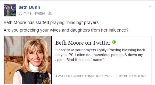 I appreciated my friend Seth Dunn's warning about Beth Moore. He wrote on Facebook,